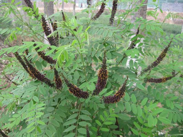 紫穗槐豆科落葉灌木,高1-4米。枝褐色、被柔毛,后變無(wú)毛,葉互生,基部有線形托葉,穗狀花序密被短柔毛,花有短梗;花萼被疏毛或幾無(wú)毛;旗瓣心形,紫色。莢果下垂,微彎曲,頂端具小尖,棕褐色,表面有凸起的疣狀腺點(diǎn)。