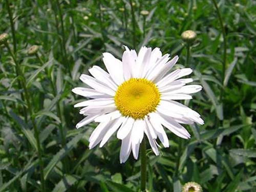 濱菊(Leucanthemum vulgate Lam.)菊科多年生草本,高15-80厘米。莖直立,通常不分枝,被絨毛或卷毛至無毛。基生葉花期生存,長橢圓形、倒披針形、倒卵形或卵形,基部楔形,漸狹成長柄,柄長于葉片自身,邊緣圓或鈍鋸齒。全部葉兩面無毛,腺點不明顯。頭狀花序單生莖頂,有長花梗,或莖生2-5個頭狀花序,排成疏松傘房狀??偘鷱?0-20毫米。全部苞片無毛,邊緣白色或褐色膜質(zhì)。瘦果長2-3毫米,無冠毛或舌狀花瘦果有長達(dá)0.4毫米的側(cè)緣冠齒。花果期5-10月。